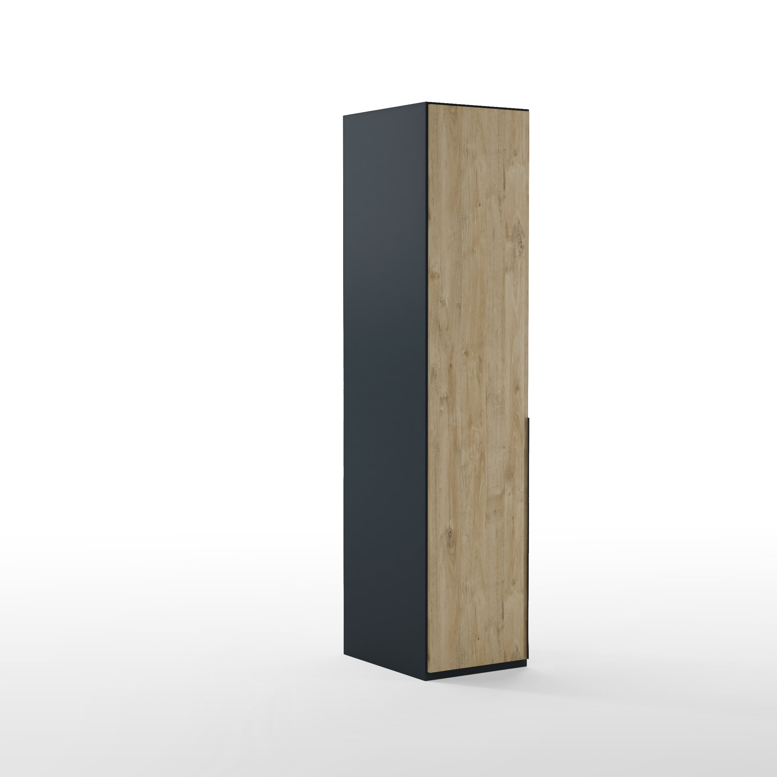Armario BORKEN de 45×208 cm de 1 puerta, cuerpo disponible en tres acabados, puerta roble, tirador largo en acabado cromo.