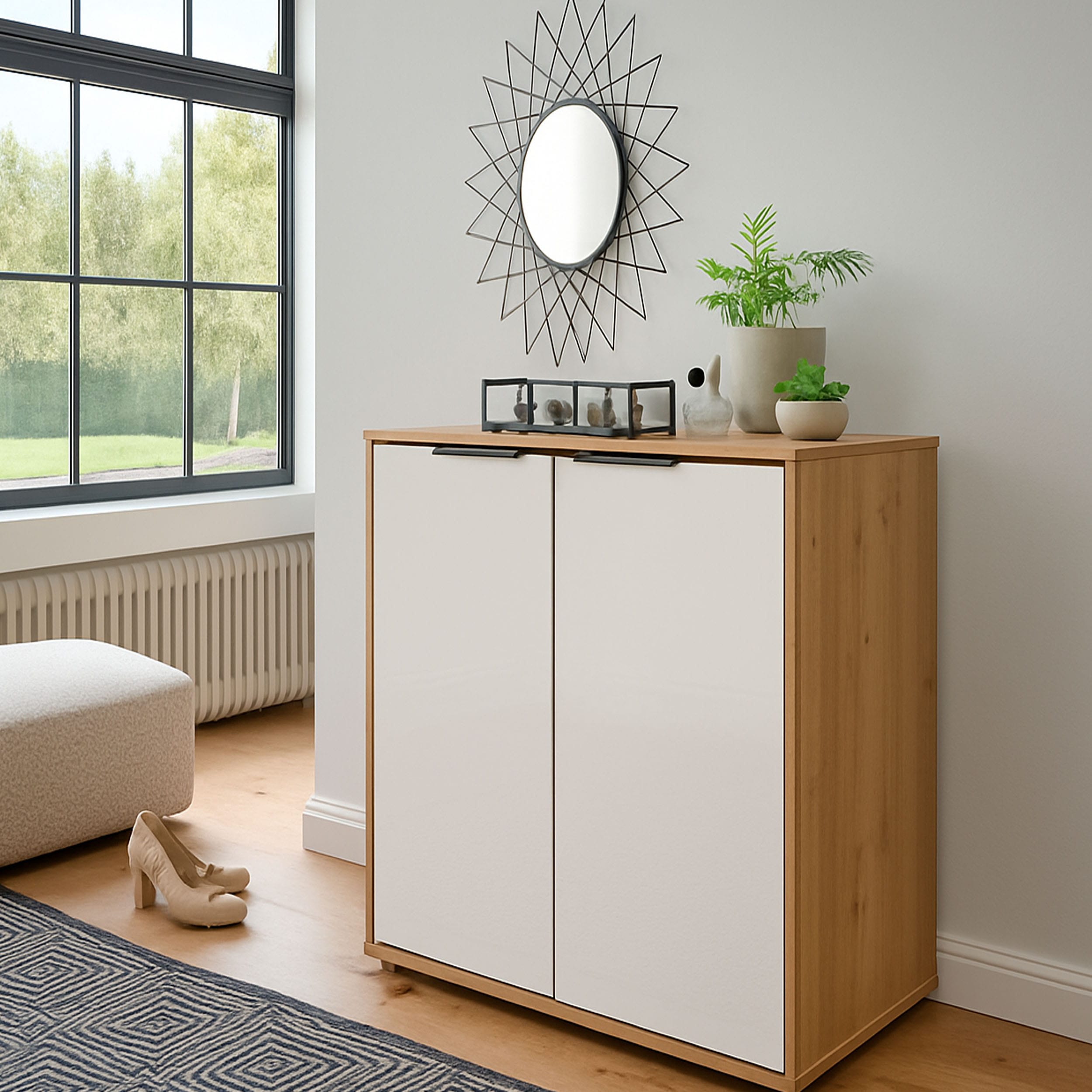 Con unas medidas de 80 x 70 x 35 cm, ofrece un almacenamiento amplio sin ocupar demasiado espacio, ideal para salones, comedores, recibidores o incluso dormitorios.